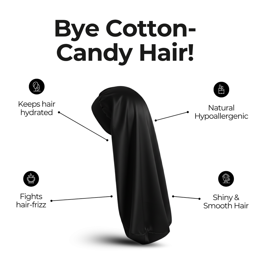 Silky smooth bonnet that actually lets you sleep well, comfortably and make your hair glossy all at the same time. No more sweating, no more slipping off. Just a pure overnight Salon.