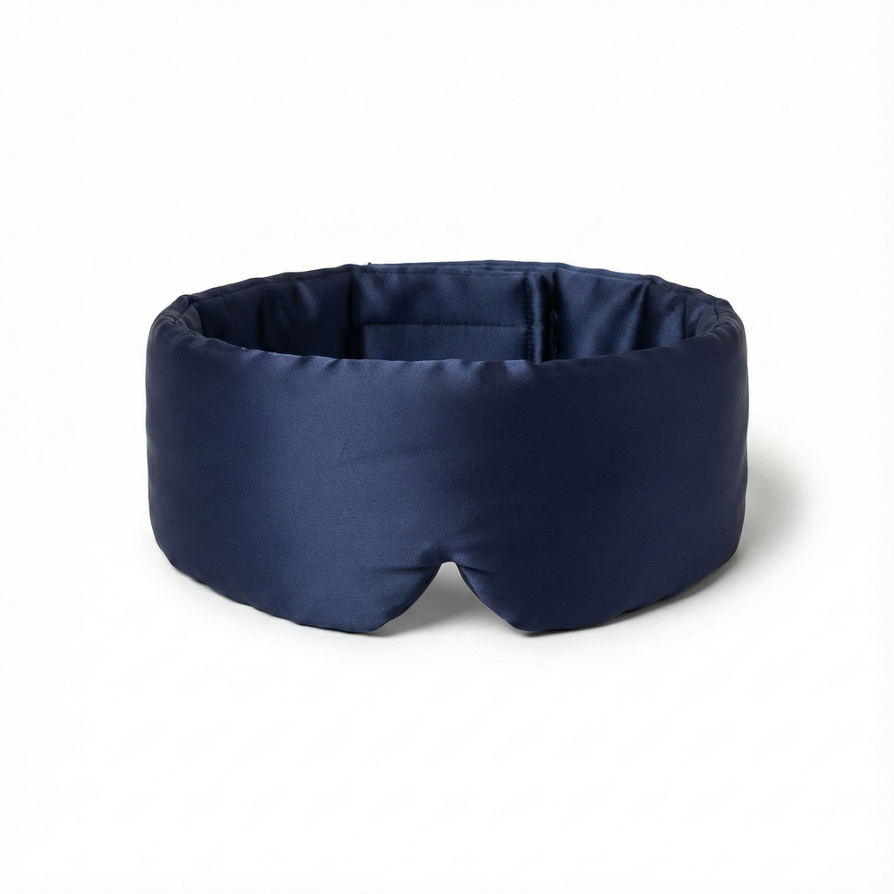 "Silk eye masks not only help to cut out any light in a room but they also help to reduce wrinkling around the eye area. Silk is the most amazing natural product in that it prevents wrinkles and sleep lines due to reduced friction between the silk and the skin. Silk is also the exact same pH of the skin and it also absorbs less moisture than cotton pillow slips and other fabrics and your night products tend to not migrate from your face onto the pillow slip. An added benefit is that it helps to reduce frizzy hair and split ends i.e. bed head making the hair smoother after a night's sleep. The natural protein in silk, Sericin, impedes the growth of house dust mites and molds and this helps those with allergies to sleep better"